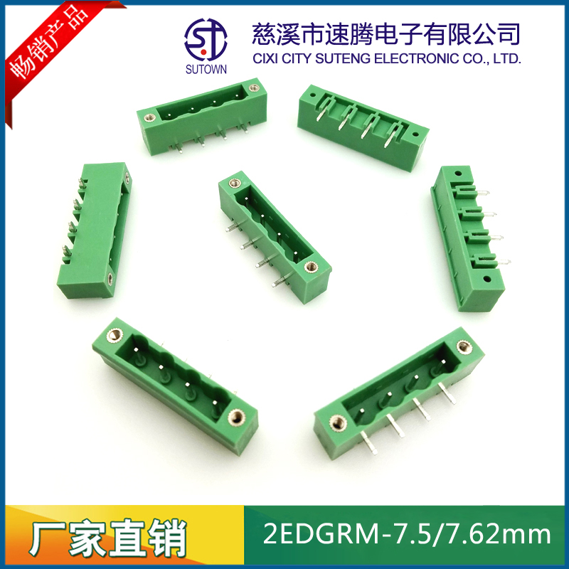Material and Plating Spacing:7.5/7.62mm Plastic parts;PA66,UL94V-0 Cage:Brass,Tin plating Screw:M3.0,Steel,Zn Plating Terminal:Phosphor bronze,Nickel plating Electrical performance Rated voltage:300V Rated current:15A Ambient temperature:-40℃~+105℃ MAX Soldering:+250℃,5s Withstanding Voltage:AC2000V/1Min Contact resistance:20mΩ Insulation resistance:5000MΩ/1000V Wire diameter:28-12AWG 2.5mm2 Torque:0.4Nm Strip length:7-8mm