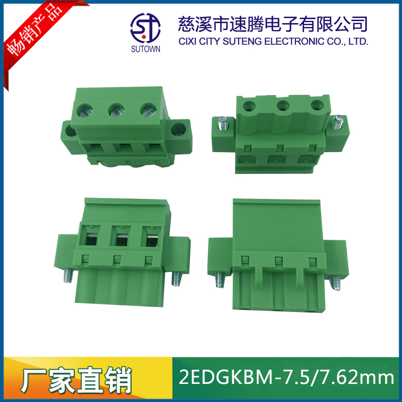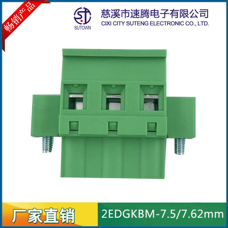 Material and Plating Spacing:7.5/7.62mm Plastic parts;PA66,UL94V-0 Cage:Brass,Tin plating Screw:M3.0,Steel,Zn Plating Terminal:Phosphor bronze,Nickel plating Electrical performance Rated voltage:300V Rated current:15A Ambient temperature:-40℃~+105℃ MAX Soldering:+250℃,5s Withstanding Voltage:AC2000V/1Min Contact resistance:20mΩ Insulation resistance:5000MΩ/1000V Wire diameter:28-12AWG 2.5mm2 Torque:0.4Nm Strip length:7-8mm