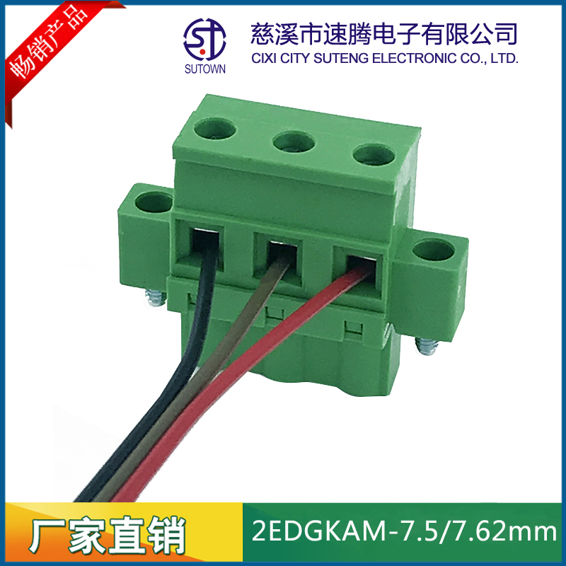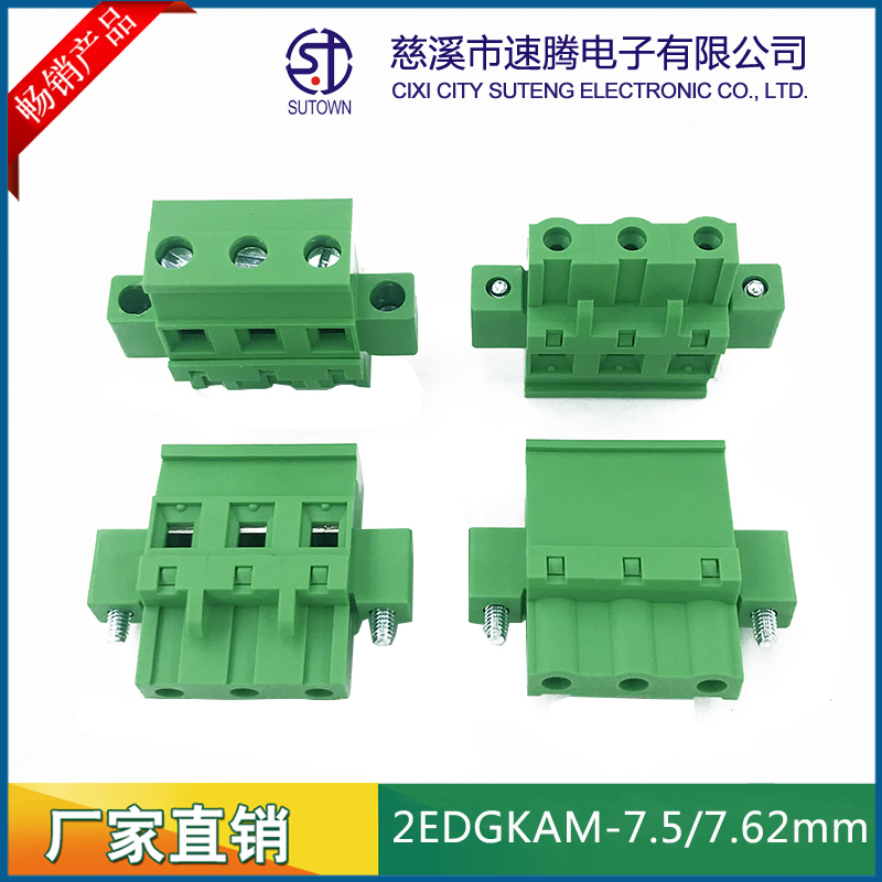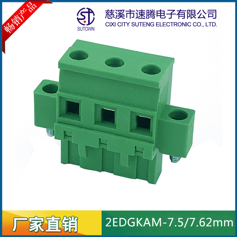 Material and Plating Spacing:7.5/7.62mm Plastic parts;PA66,UL94V-0 Cage:Brass,Tin plating Screw:M2.0,Steel,Zn Plating Terminal:Phosphor bronze,Nickel plating Electrical performance Rated voltage:300V Rated current:15A Mechanical properties Ambient temperature:-40℃~+105℃ MAX Soldering:+250℃,5s Withstanding Voltage:AC2500V/1Min Contact resistance:20mΩ Insulation resistance:5000MΩ/1000V Wire diameter:28-16AWG 1.5mm2 Torque:0.4Nm Strip length:7-8mm