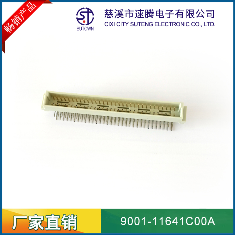 品名:欧式插座连接器型号:9001-11641C00A 规格:64pin属性:弯针公座 备注:中间排1排间距:2.54间距
