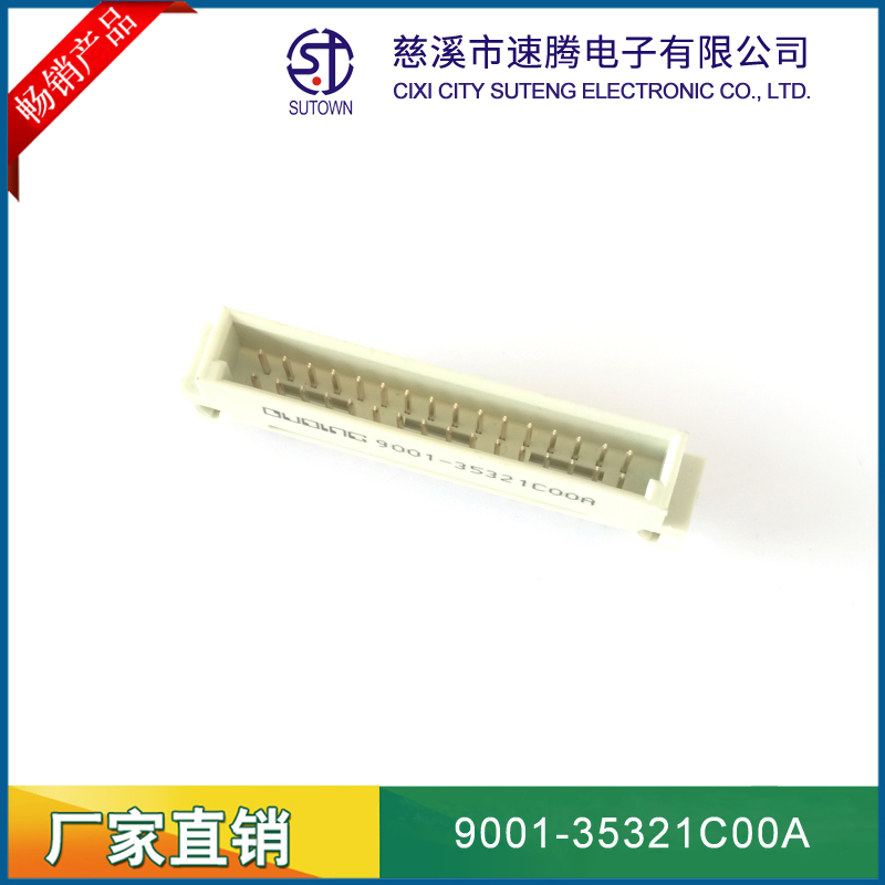 品名:欧式插座连接器型号:9001-35321C00A 规格:32pin属性:弯针公座 90°间距:2.54间距