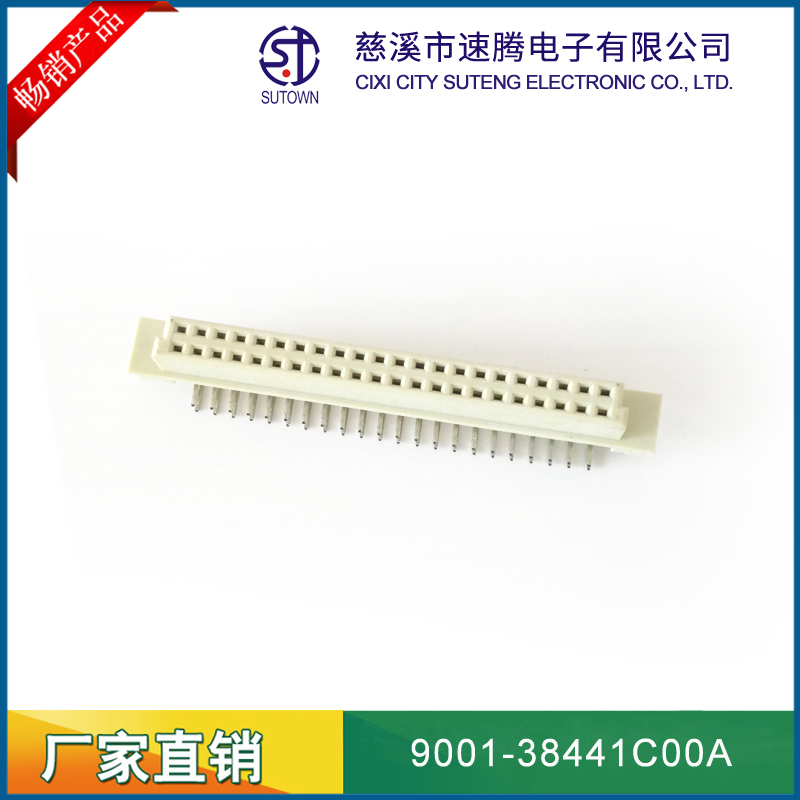 品名:欧式插座连接器型号:9001-38441C00A 规格:44pin属性:弯针母座 90°间距:2.54间距