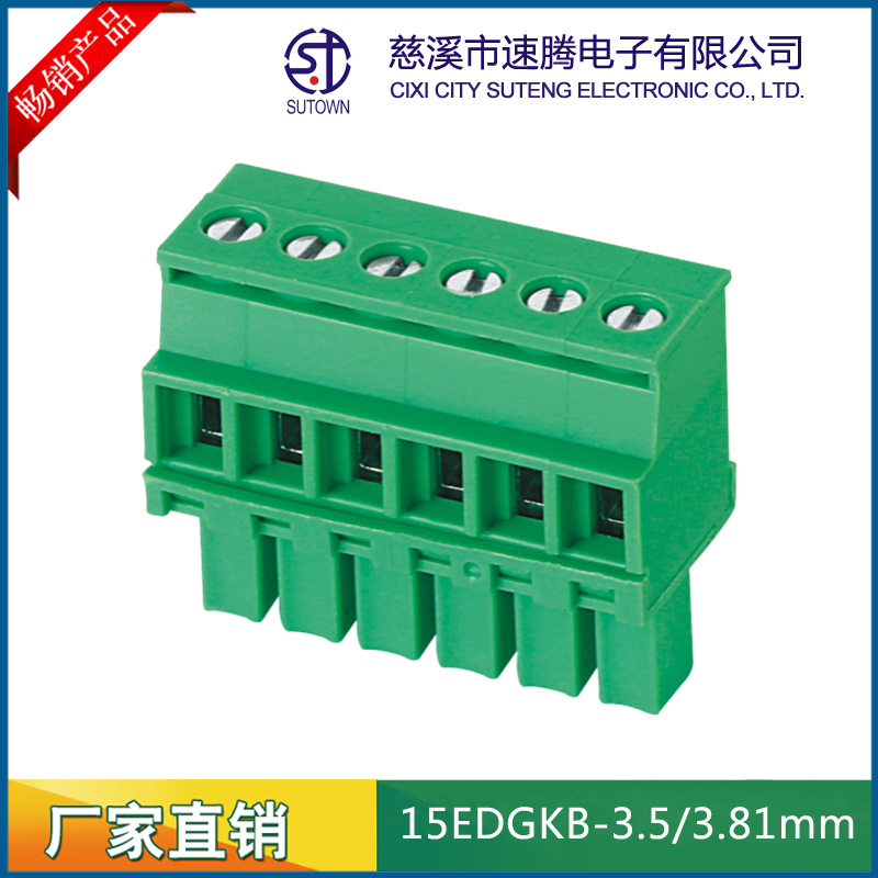 间距:3.5mm/3.81mm材质及电镀触点材料 : 磷青铜螺丝 :M2 钢 镀锌方块:铜,镀镍塑 件 : PA66 UL94V-0电气性能额定电压: 300V额定电流: 8A接触电阻: 20mΩ绝缘电阻: 5000MΩ\1000V耐电压: AC1500V\1Min使用线径: 28-12AWG 1.5mm2机械性能温度范围: -40℃~+105℃瞬时温度: +250℃ 5秒扭力:0.5Nm(4.5lb.in)剥线长度:7-8mm